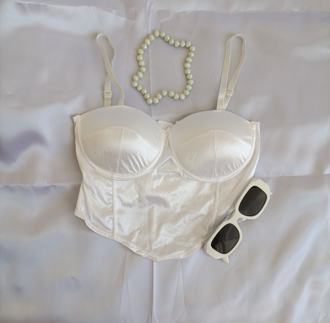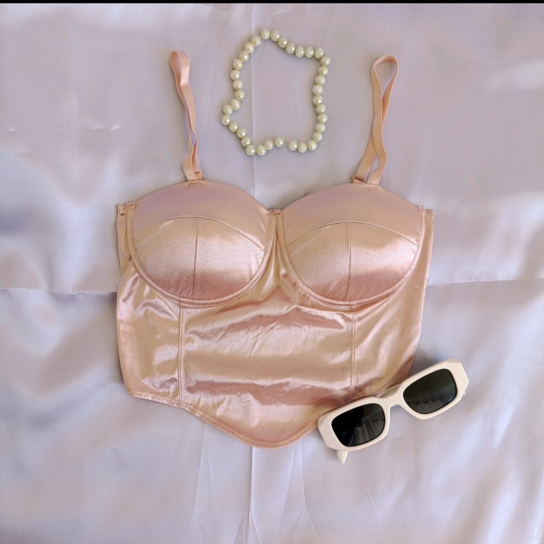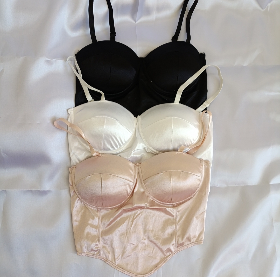 کراپ ساتن آمریکایی کاپ ثابت بند تنظیمی پشت کار تمام کش دوزی سایزبندی:فریسایز(۳۴ تا ۴۰)
